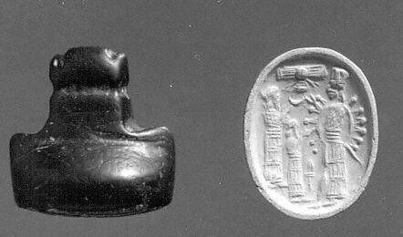 - Title: Stamp seal (oval base with hammer handle) with cultic scene