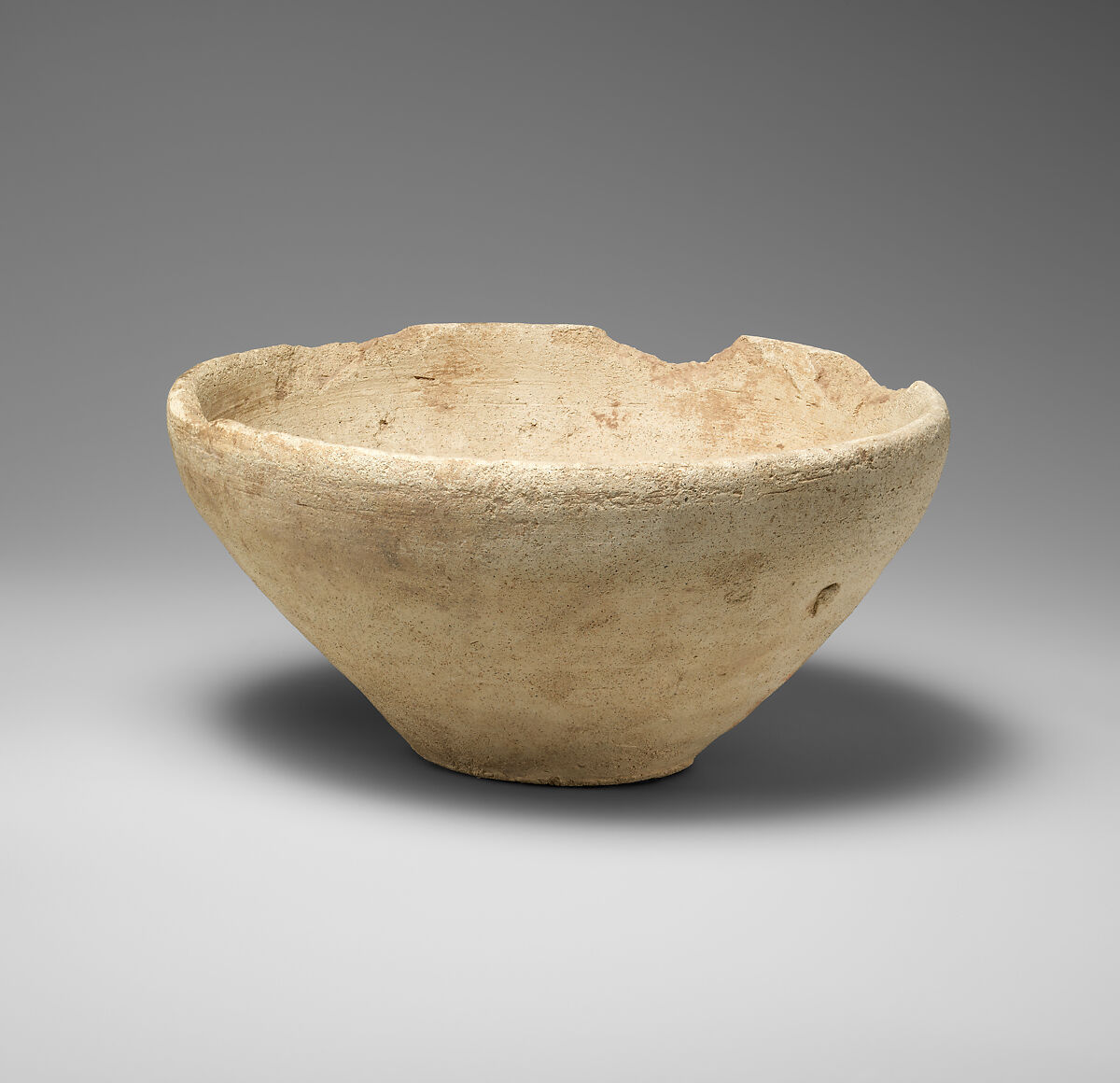 Plain unglazed ceramics, like this cream colored bowl, are the most common type of pottery found during the Sasanian period. These plain vessels were part of the everyday household materials. Because ceramic material is so durable, clay artifacts are one of the most frequently recovered materials in the archaeological record. The bowl was excavated from a house at the site of Ma’aridh IV in the Ctesiphon area.