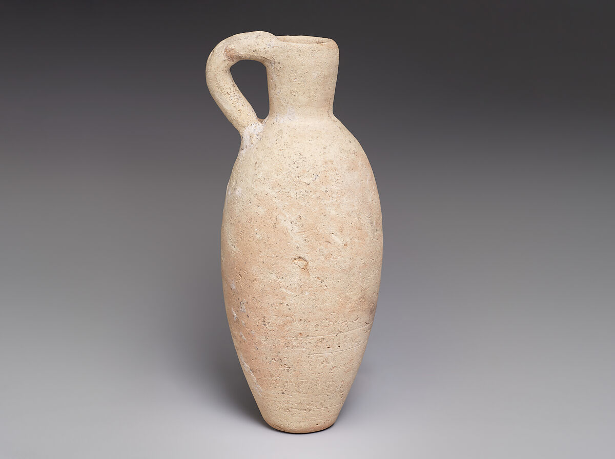 Plain unglazed ceramics, like this jar, are the most common type of pottery found during the Sasanian period. These plain vessels were part of the everyday household materials. The ceramics during this period were mostly wheel-made. This jar was excavated from a house at the site of Ma’aridh II in the Ctesiphon area and is very well preserved