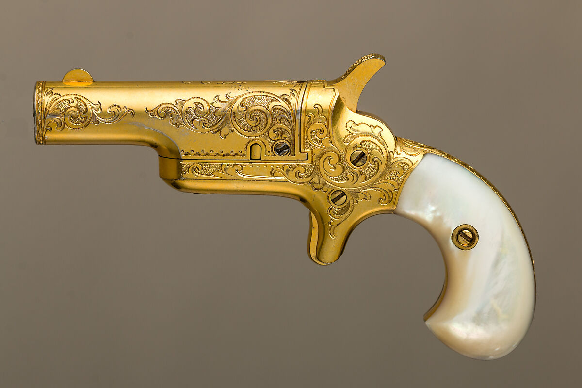 First manufactured by Colt's factory in Paterson, New Jersey (1836–42), from 1847, the revolvers were made at a much larger plant in Hartford, Connecticut. A special workshop at the Hartford factory employed highly skilled decorators and artisans, many of German origin. Their ornamental motifs, still popular in American gunmaking, centered on fine scrollwork. Animal and human figures and allegorical images were added to floral scrolls, sometimes enhanced with gold and silver inlay, particularly on deluxe firearms made for exhibition and display or as personal gifts from Colt to prominent individuals, including several heads of state.