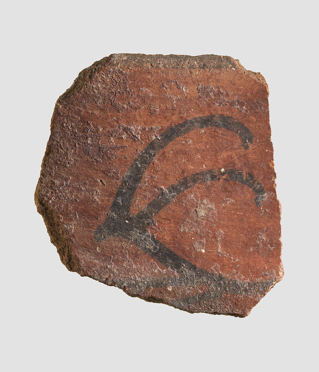 This sherd is made of a red clay, with black painted decoration showing the head of a horned animal. It is typical of Namazga II ceramics from Turkmenistan, dating to ca. 3500-3100 B.C. It was excavated in 1937 at a prehistoric site in the vicinity of Nishapur in northeastern Iran. While Nishapur itself was founded by the Sasanian king Shapur I (reigned ca. A.D. 241-272), this sherd shows that human habitation there goes back to the prehistoric period. Furthermore, the prehistoric pottery from Nishapur has close affinities with ceramic materials from Central Asia rather than with contemporary sites in Iran, meaning that in this period its inhabitants were likely culturally linked to their neighbors to the east. At the same time, Nishapur’s location on what later became known as the Great Khorasan Road suggests that it was part of the trade network that facilitated the import of precious stones such as lapis lazuli, carnelian and turquoise from Central Asia to Mesopotamia.