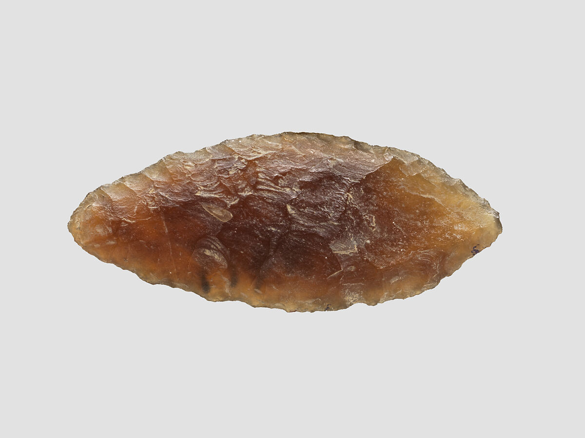 This flint blade was excavated in 1937 at a prehistoric site in the vicinity of Nishapur in northeastern Iran. While Nishapur itself was founded by the Sasanian king Shapur I (reigned ca. A.D. 241-272), this blade shows that human habitation there goes back to the prehistoric period. Furthermore, the prehistoric pottery from Nishapur has close affinities with ceramic materials from Central Asia rather than with contemporary sites in Iran, meaning that in this period its inhabitants were likely culturally linked to their neighbors to the east. At the same time, Nishapur’s location on what later became known as the Great Khorasan Road suggests that it was part of the trade network that facilitated the import of precious stones such as lapis lazuli, carnelian and turquoise from Central Asia to Mesopotamia.