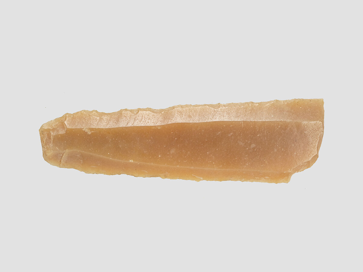 This obsidian tool was excavated in 1937 at a prehistoric site in the vicinity of Nishapur in northeastern Iran. While Nishapur itself was founded by the Sasanian king Shapur I (reigned ca. A.D. 241-272), this tool shows that human habitation there goes back to the prehistoric period. Furthermore, the prehistoric pottery from Nishapur has close affinities with ceramic materials from Central Asia rather than with contemporary sites in Iran, meaning that in this period its inhabitants were likely culturally linked to their neighbors to the east. At the same time, Nishapur’s location on what later became known as the Great Khorasan Road suggests that it was part of the trade network that facilitated the import of precious stones such as lapis lazuli, carnelian and turquoise from Central Asia to Mesopotamia.