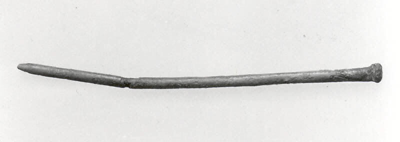 This copper pin, which was likely used to fasten clothing, was excavated in 1937 at a prehistoric site in the vicinity of Nishapur in northeastern Iran. While Nishapur itself was founded by the Sasanian king Shapur I (reigned ca. A.D. 241-272), this pin shows that human habitation there goes back to the prehistoric period. Furthermore, the prehistoric pottery from Nishapur has close affinities with ceramic materials from Central Asia rather than with contemporary sites in Iran, meaning that in this period its inhabitants were likely culturally linked to their neighbors to the east. At the same time, Nishapur’s location on what later became known as the Great Khorasan Road suggests that it was part of the trade network that facilitated the import of precious stones such as lapis lazuli, carnelian and turquoise from Central Asia to Mesopotamia.
