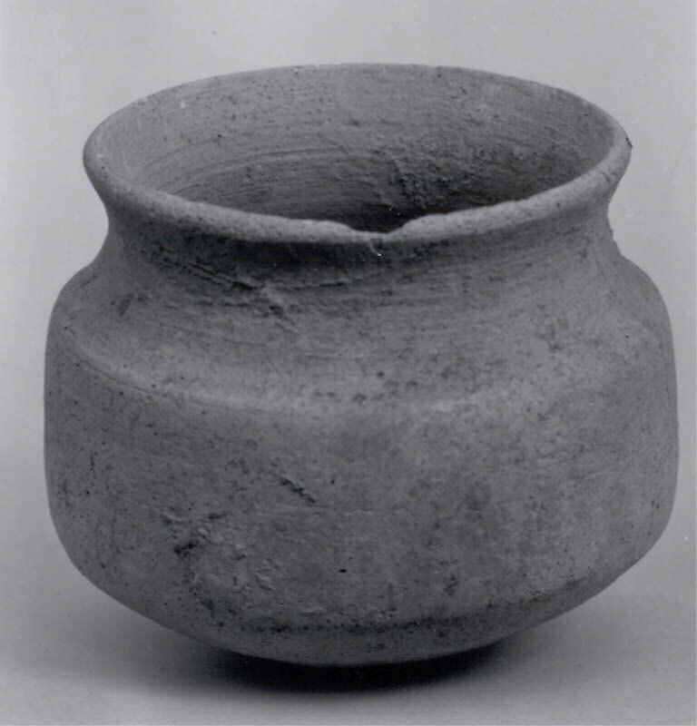 This jar has a flat base, bulging body, carinated shoulder and everted rim. It is made of a buff clay. It was found at Kamterlan I, a mound in Luristan in the Zagros Mountains of western Iran that was the site of both settlement and burials. The shape of the jar parallels that of bronze vessels, called ‘inkwells’ by archaeologists, which have been found in burials elsewhere in Luristan, as well as in Elam; in fact, the carinated shoulder is a feature of metalwork but not of pottery. Although their purpose is unclear, bronze inkwells attest to interaction and exchange between the elites of Elam and Luristan during the Bronze Age. This ceramic version suggests that its owner aspired to elite status.