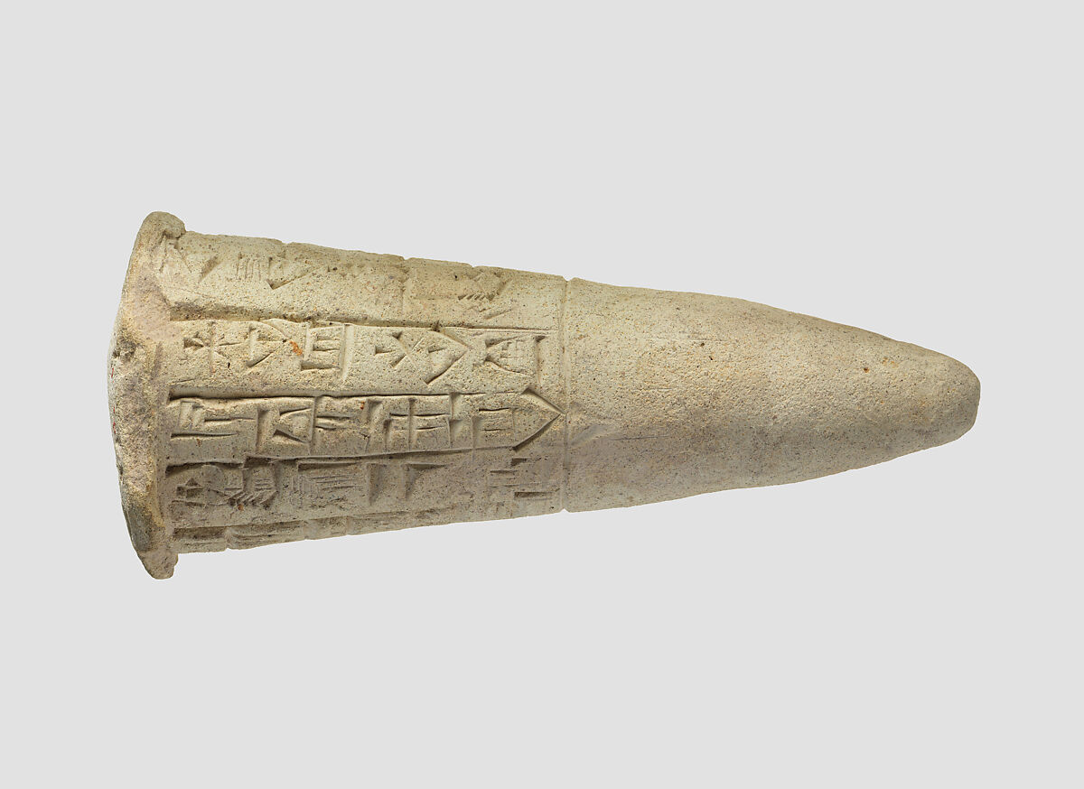 Votive cone with cuneiform inscription of Gudea: dedicated when Gudea built the Eninnu temple for the god Ningirsu
