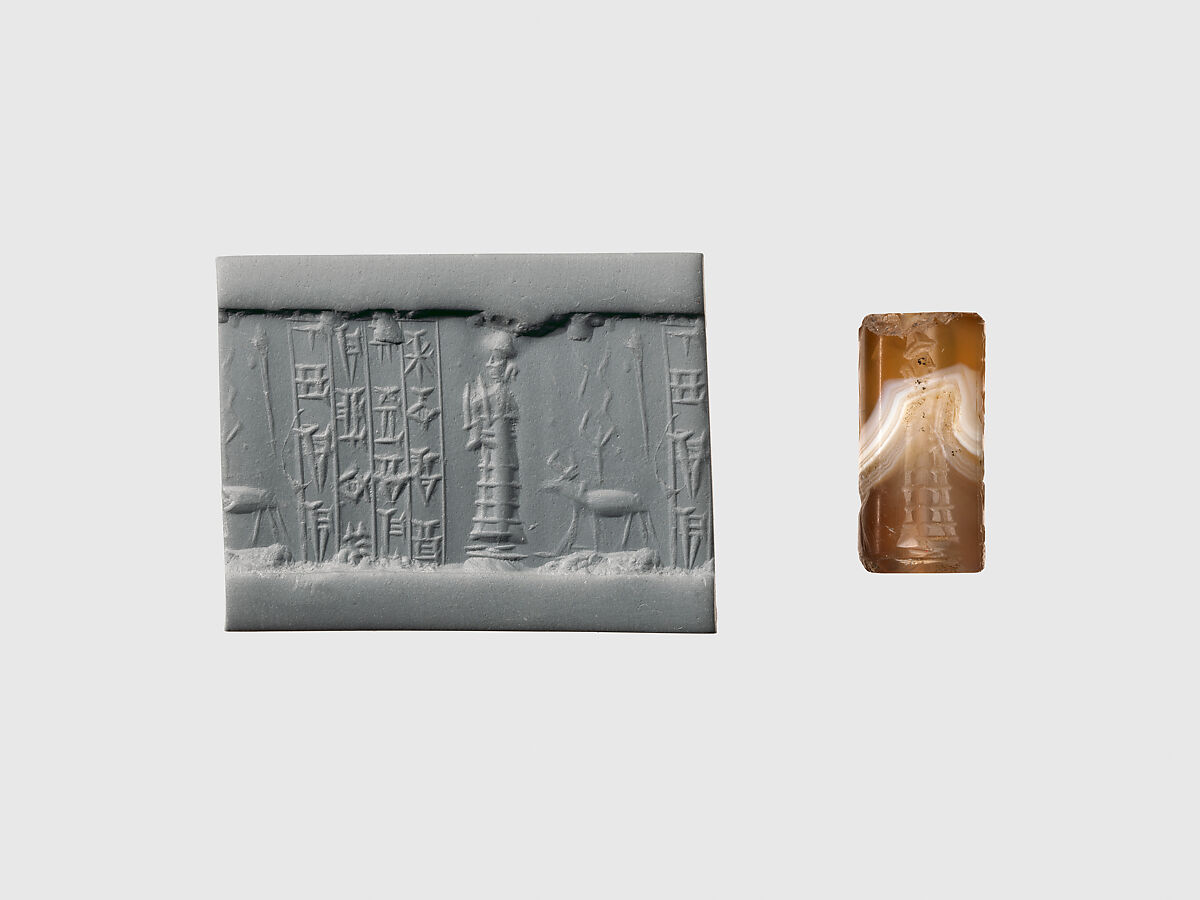 - Title: Cylinder seal and modern impression: suppliant goddess