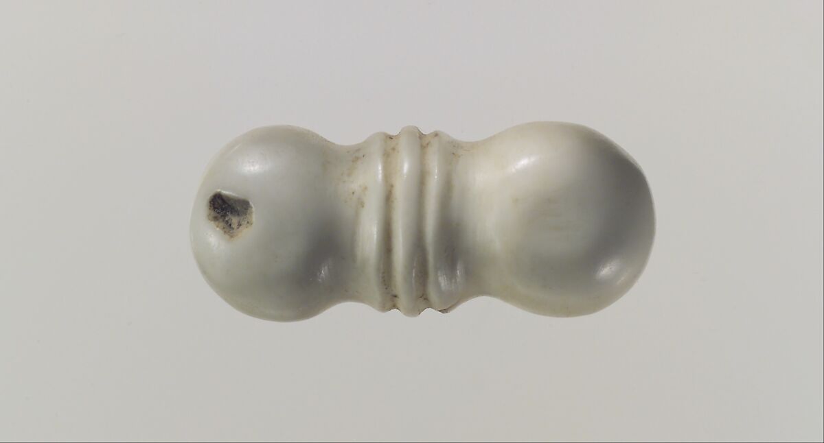 This small shell piece was found in a well in the Northwest Palace of Ashurnasirpal II at Nimrud, together with other similar shell ornaments, several of which are also in the Metropolitan Museum’s collection (54.117.16-.19). They were probably thrown into the well when the palace was sacked, in 614 B.C. and then again two years later. They can be identified as horse trappings, and were probably part of a leather harness which disintegrated in the well sludge. Horses in the reliefs of the palace of Sargon II at Dur Sharrukin (modern Khorsabad) are represented with double-fan shaped ornaments on their bridles, as in a relief in the Metropolitan Museum (33.16.1) showing a groom with two horses. Because of the close parallel with the reliefs from the palace at Dur Sharrukin, the equestrian harness elements from this well probably date to the time of Sargon in the late eighth century B.C. At this time, the Northwest Palace was primarily used for storage rather than as a royal residence.