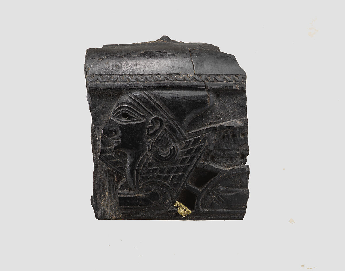 - Title: Cosmetic box fragment carved in relief with the head of a sphinx