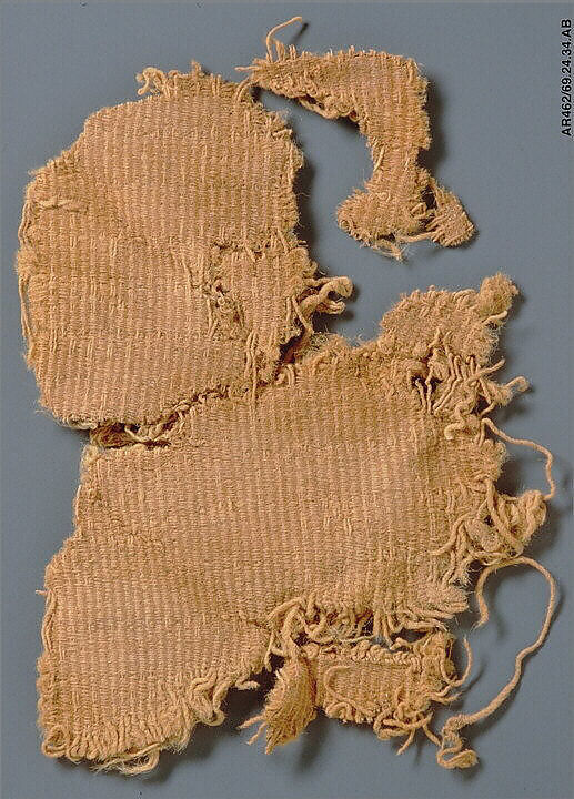 These wool fragments were once part of a pile carpet. They were excavated at Shahr-i Qumis in northern Iran, which has been identified as the ancient city of Hecatompylos, established by the Parthians as their capital by about 200 B.C. However, these fragments come from Room 23 at Site VI, which was seemingly converted into a burial chamber during the 6th century A.D., a date indicated by a coin of the Sasanian king Hormizd IV (reigned A.D. 579-590). The human remains discovered there consist of disarticulated bones, which is in keeping with Zoroastrian burial practice. Yet the bones appear to have been wrapped in leather and wool, which would be unusual for Zoroastrians, as is the inclusion of a coin with the body. Thus it is possible that in the 6th century Zoroastrian burial practices were still under development or that there were regional variations that are not recorded in surviving texts.