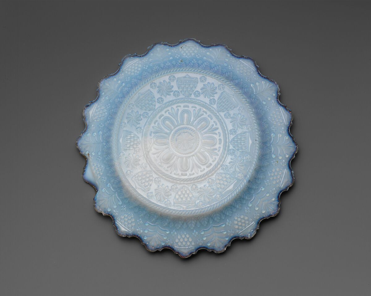 - Medium: Lacy pressed opalescent glass