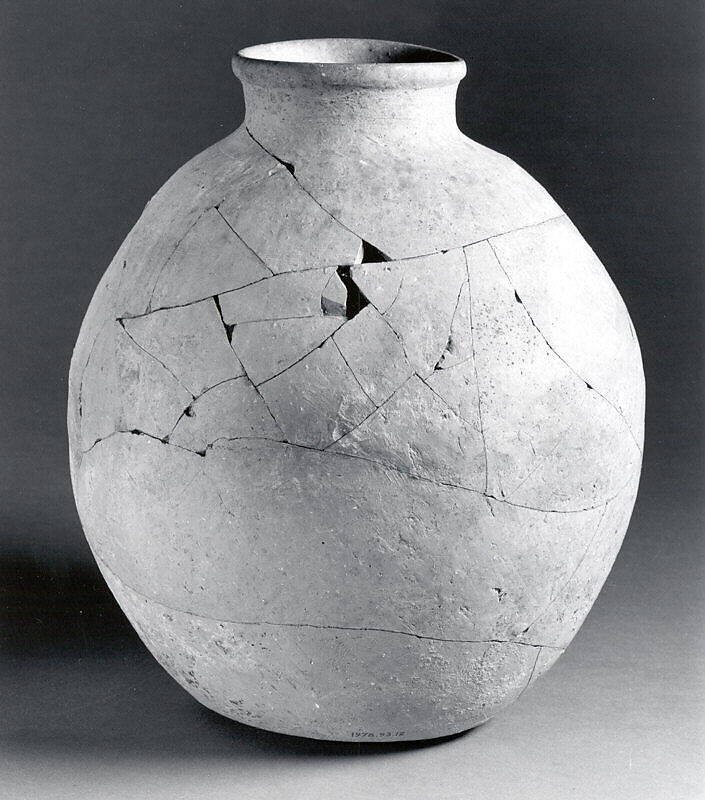 This large ceramic jar has a globular body, a flat base and a straight neck. It is made of a buff clay. It was excavated at Pasargadae in southwestern Iran, about 90 km northeast of Shiraz. Pasargadae was the first capital of the Achaemenid Persian Empire, founded by Cyrus the Great c. 546 B.C. The jar was found at the Tall-i Takht, a massive artificial platform presumably built as the site of a royal palace but converted into a fortified compound after Darius established a new capital at Persepolis around 520. However, the coin hoards and other finds from the Takht, including this jar, show that it continued to be occupied down into the second century B.C., long after the fall of the Achaemenid Empire. This jar was found in a room on the northern end of the Takht.
