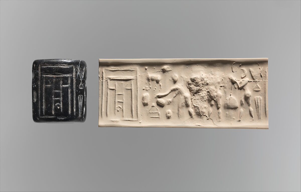 Although engraved stones had been used as early as the seventh millennium B.C. to stamp impressions in clay, the invention in the fourth millennium B.C. of carved cylinders that could be rolled over clay allowed the development of more complex seal designs. These cylinder seals, first used in Mesopotamia, served as a mark of ownership or identification. Seals were either impressed on lumps of clay that were used to close jars, doors, and baskets, or they were rolled onto clay tablets that recorded information about commercial or legal transactions. The seals were often made of precious stones. Protective properties may have been ascribed to both the material itself and the carved designs. Seals are important to the study of ancient Near Eastern art because many examples survive from every period and can, therefore, help to define chronological phases. Often preserving imagery no longer extant in any other medium, they serve as a visual chronicle of style and iconography.