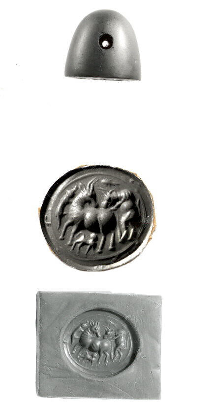 - Title: Conoid stamp seal: lions (?) attacking cow suckling calf