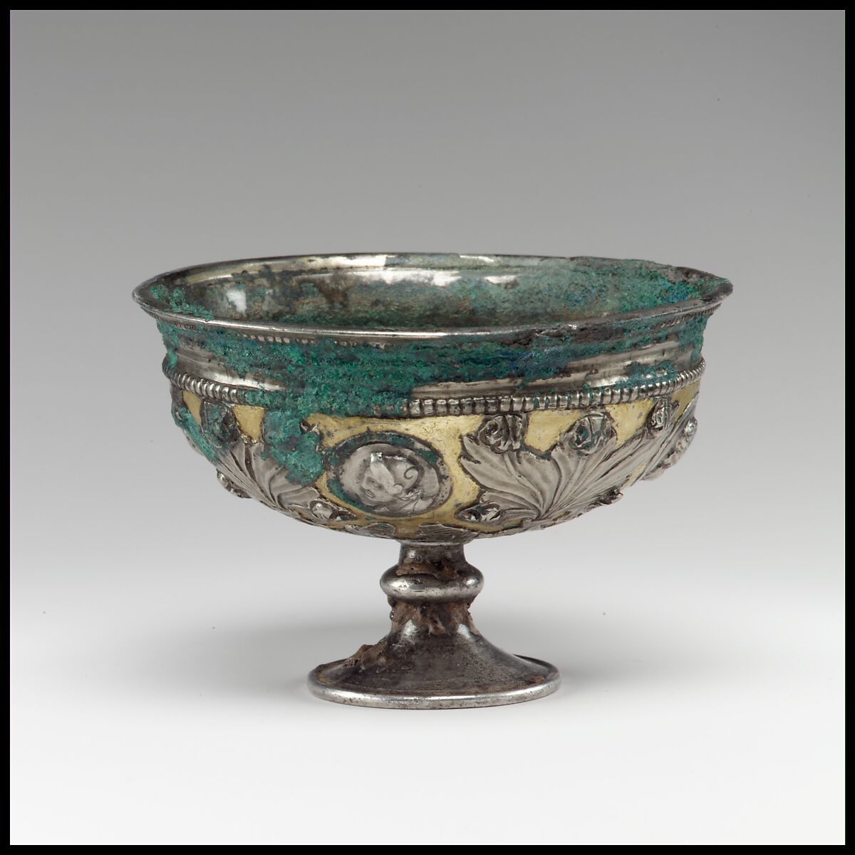 - Title: Footed cup with human busts in medallions