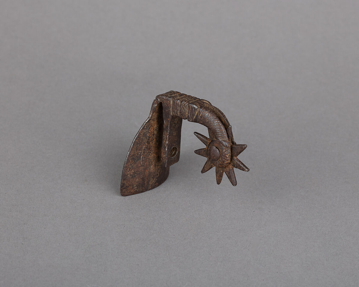 This is a branchless spur that could be attached directly at the back on a regular shoe, for occasional and casual riding. A screw passing through the base of the neck (missing), was used for tightening it to the shoe’s leather.