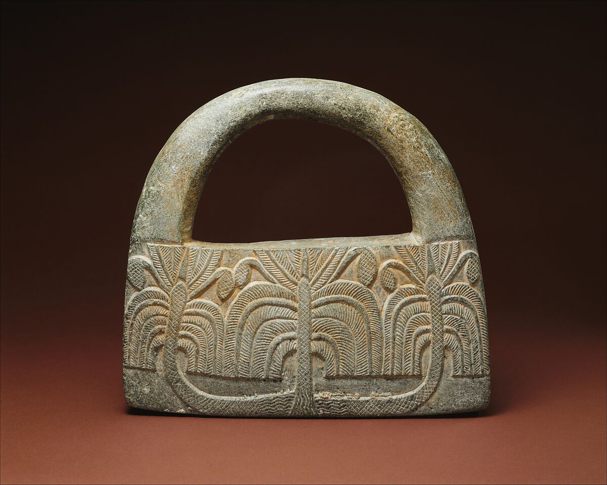 - Title: Object with a handle, perhaps a weight; palm trees and guilloche