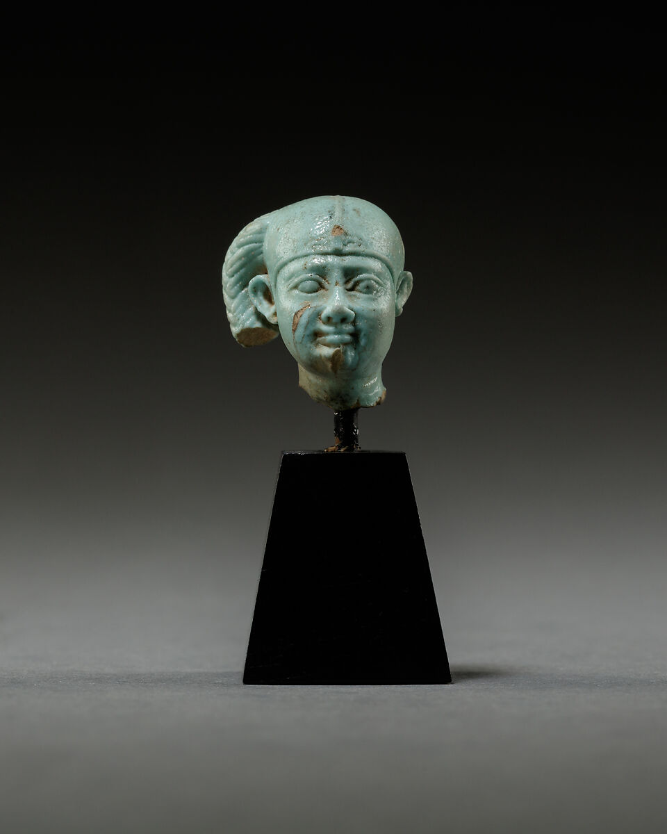 Beginning in the Third Intermediate Period (ca. 1000-700 B.C.), child gods grew in importance, and were especially popular as temple offerings. The best known of these was Harpokrates (Horus the Child, or Hor-pa-khered), but since this head preserves no inscription, it could also represent a different youthful deity, such as Khonsu the Child, Ihy, or Harsiese.