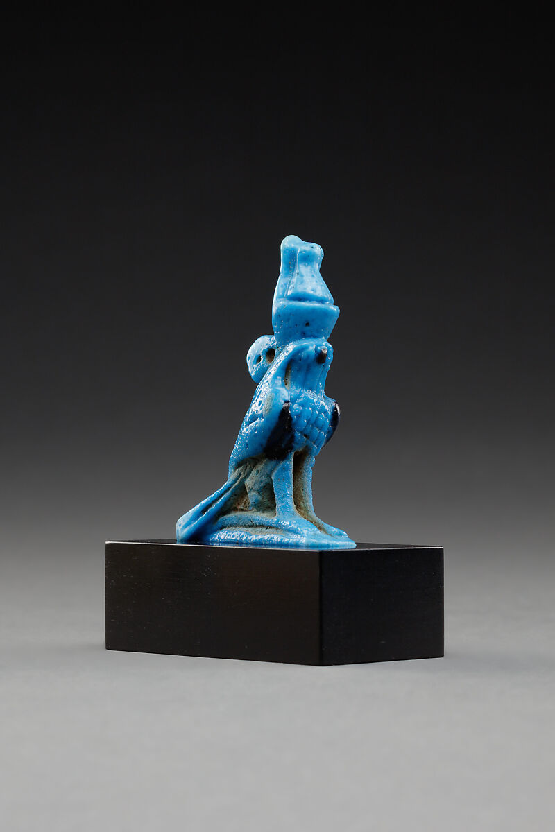 - Title:Horus amulet in the shape of a falcon with the double crown