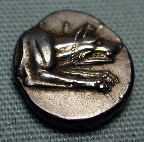 Coins of Greek city-states depicted unique images or symbols that represented their particular city. Argos began issuing coins at the beginning of the 5th century B.C. with the forepart of a wolf on the obverse and an "A" on the reverse. The wolf was the symbol of Apollo Lykios (Wolf-god), who was worshipped in Argos and had a sanctuary dedicated to him near the agora.