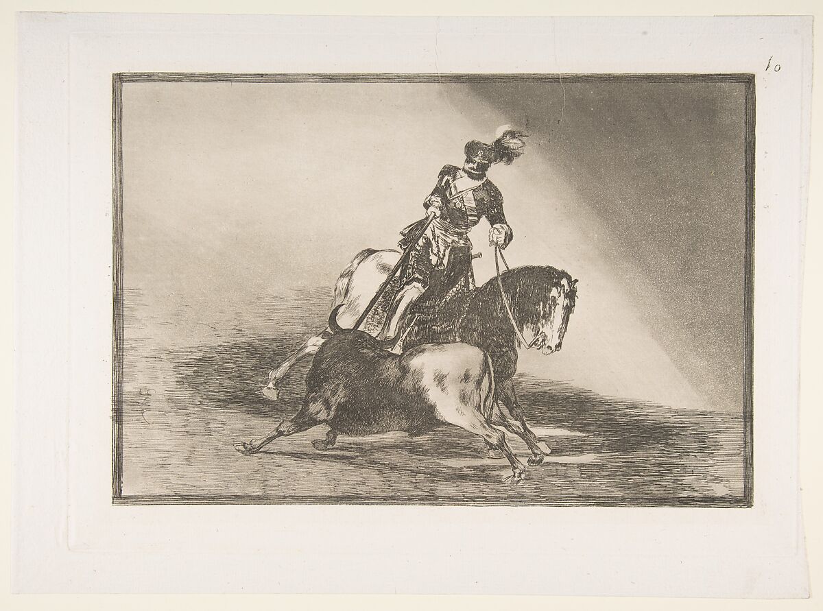 - Title:Charles V spearing a bull in the ring at Valladolid, plate 10 from "La Tauromaquia"