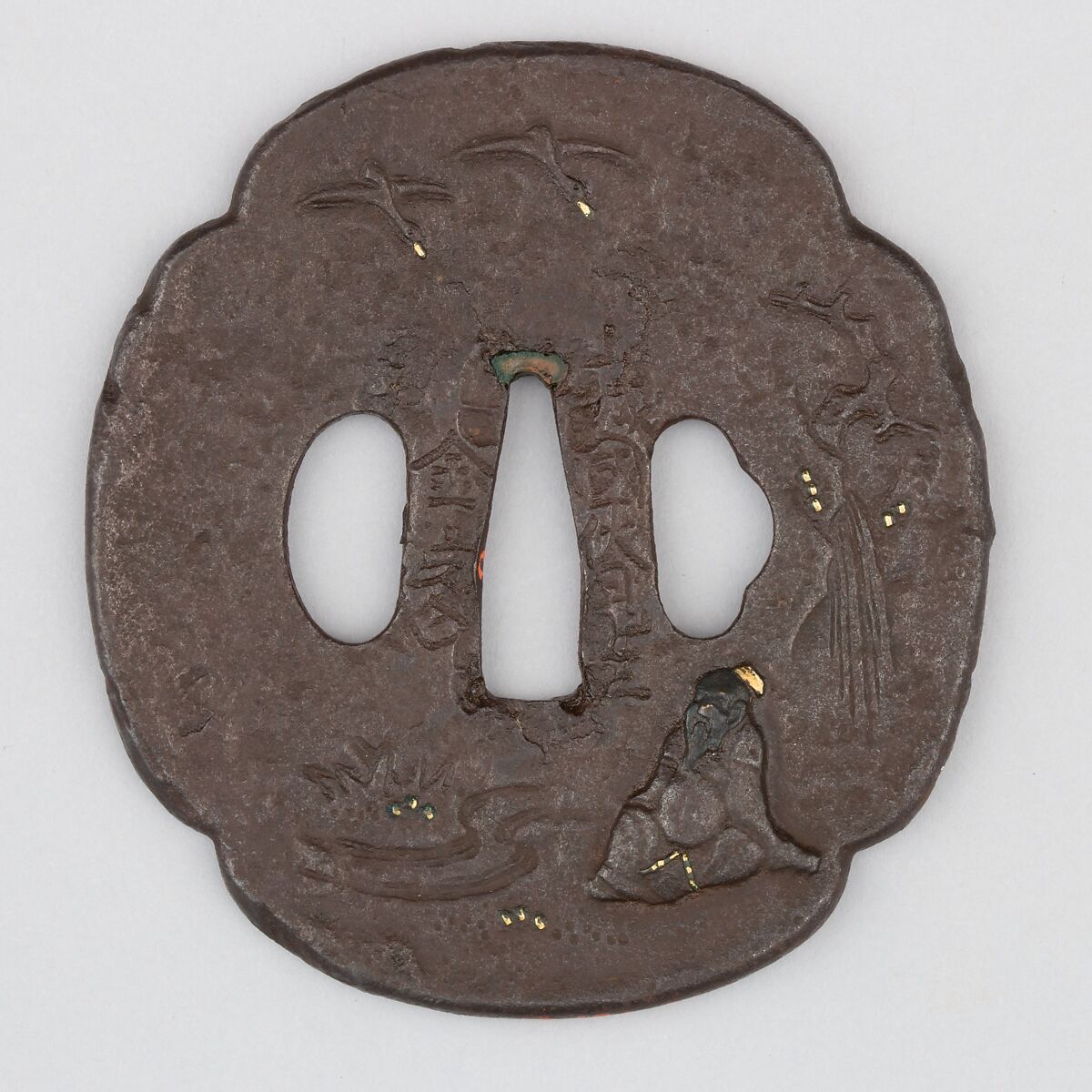 A tsuba is a sword guard and part of a sword mounting. It is mounted between the sword’s blade and grip to protect the user’s hands.