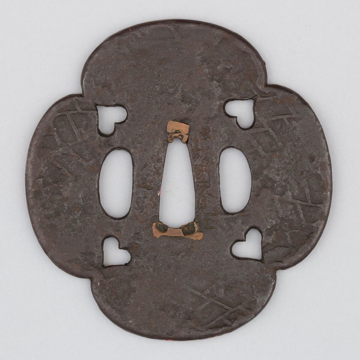 A tsuba is a sword guard and part of a sword mounting. It is mounted between the sword’s blade and grip to protect the user’s hands.