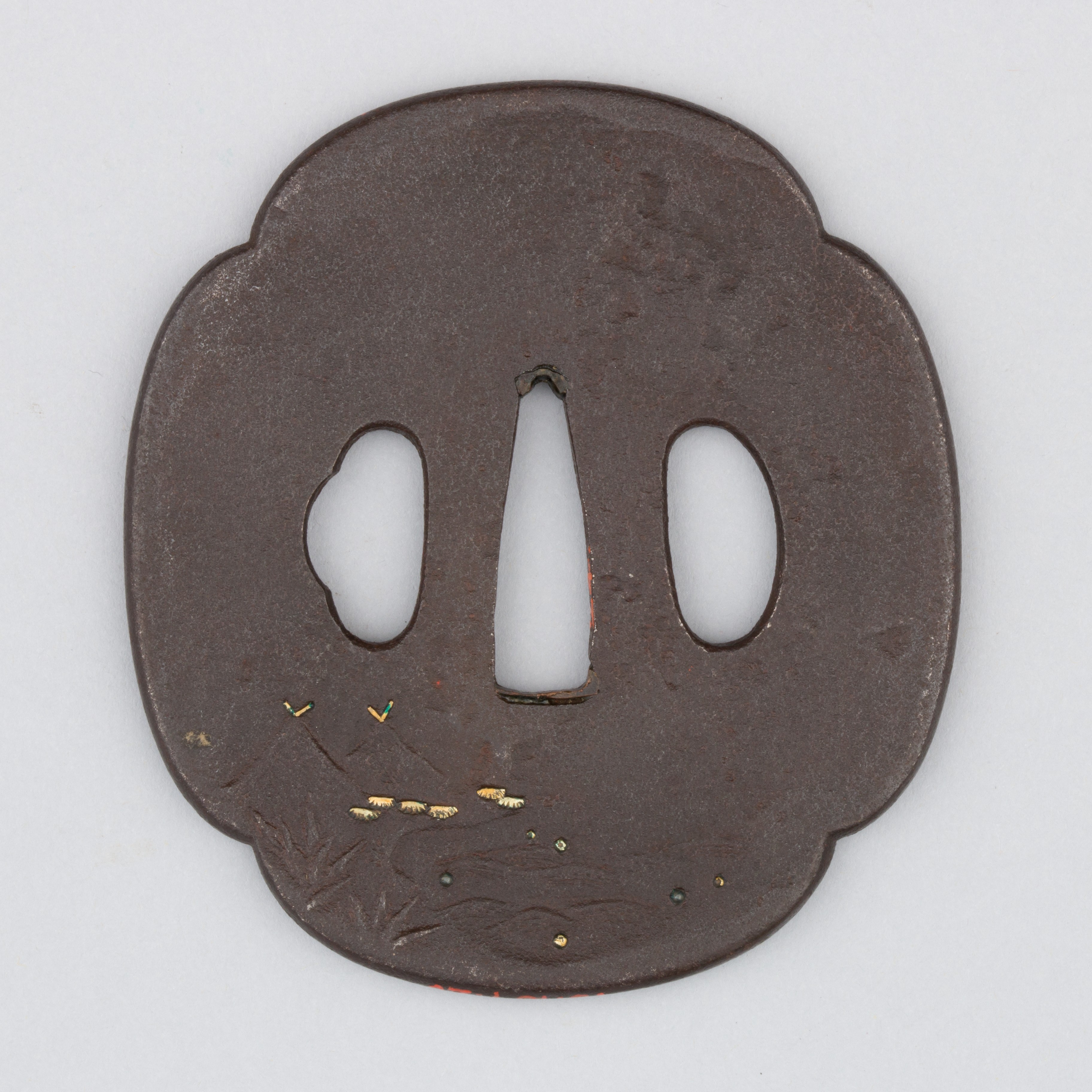 A tsuba is a sword guard and part of a sword mounting. It is mounted between the sword’s blade and grip to protect the user’s hands.