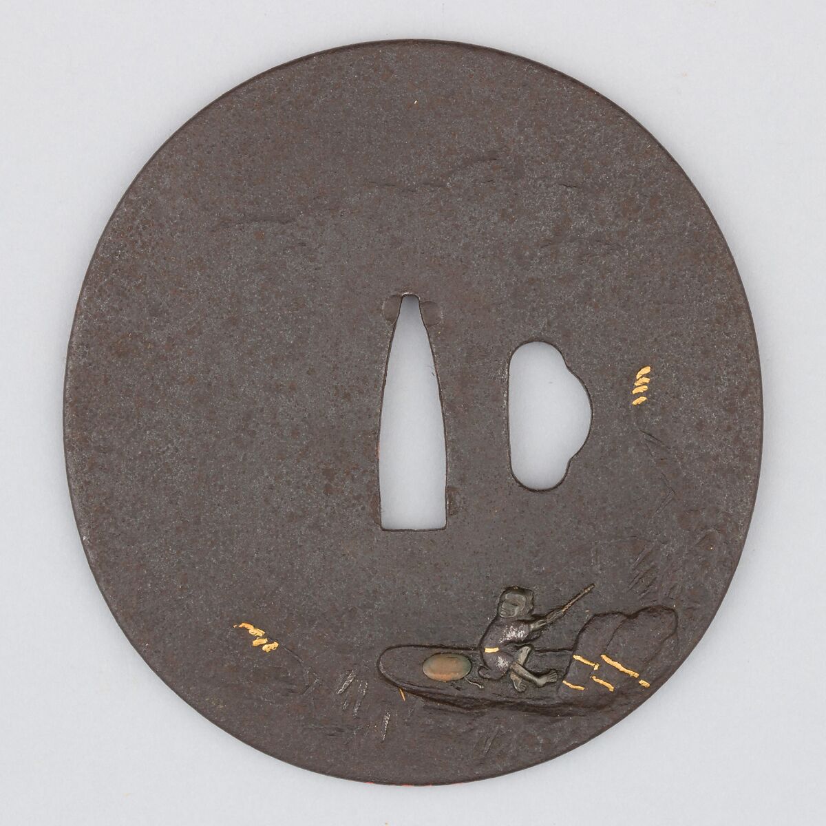A tsuba is a sword guard and part of a sword mounting. It is mounted between the sword’s blade and grip to protect the user’s hands.