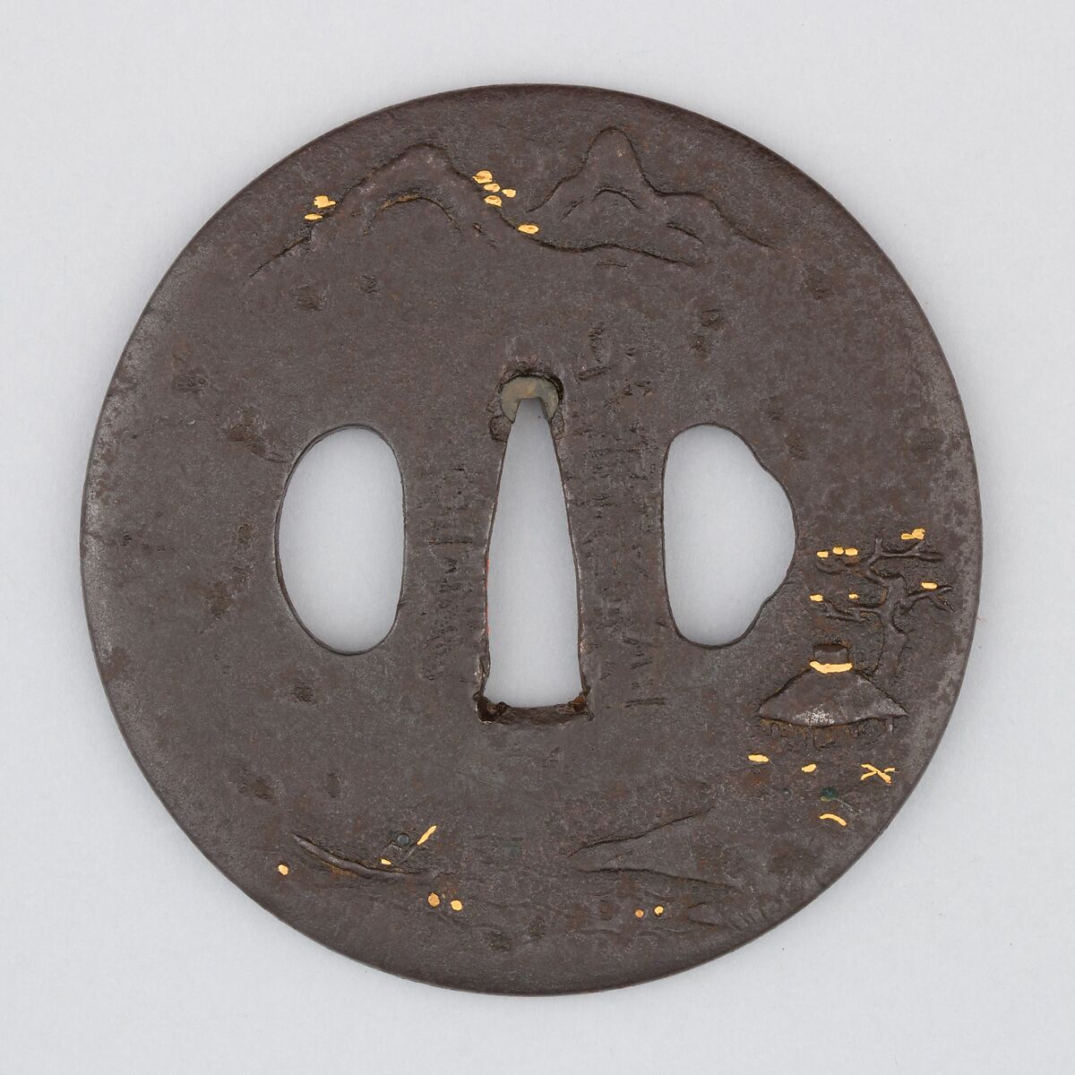 A tsuba is a sword guard and part of a sword mounting. It is mounted between the sword’s blade and grip to protect the user’s hands.