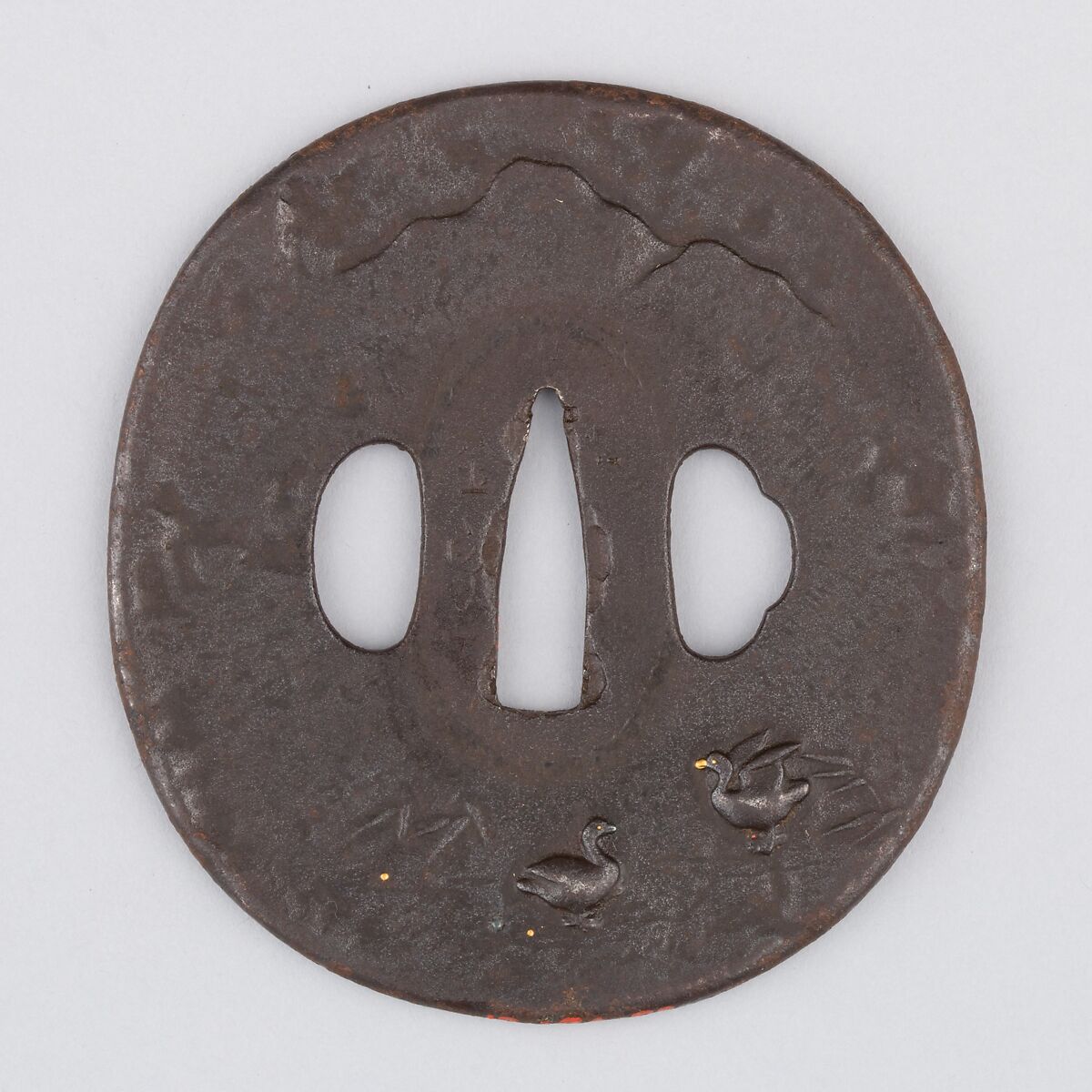 A tsuba is a sword guard and part of a sword mounting. It is mounted between the sword’s blade and grip to protect the user’s hands.