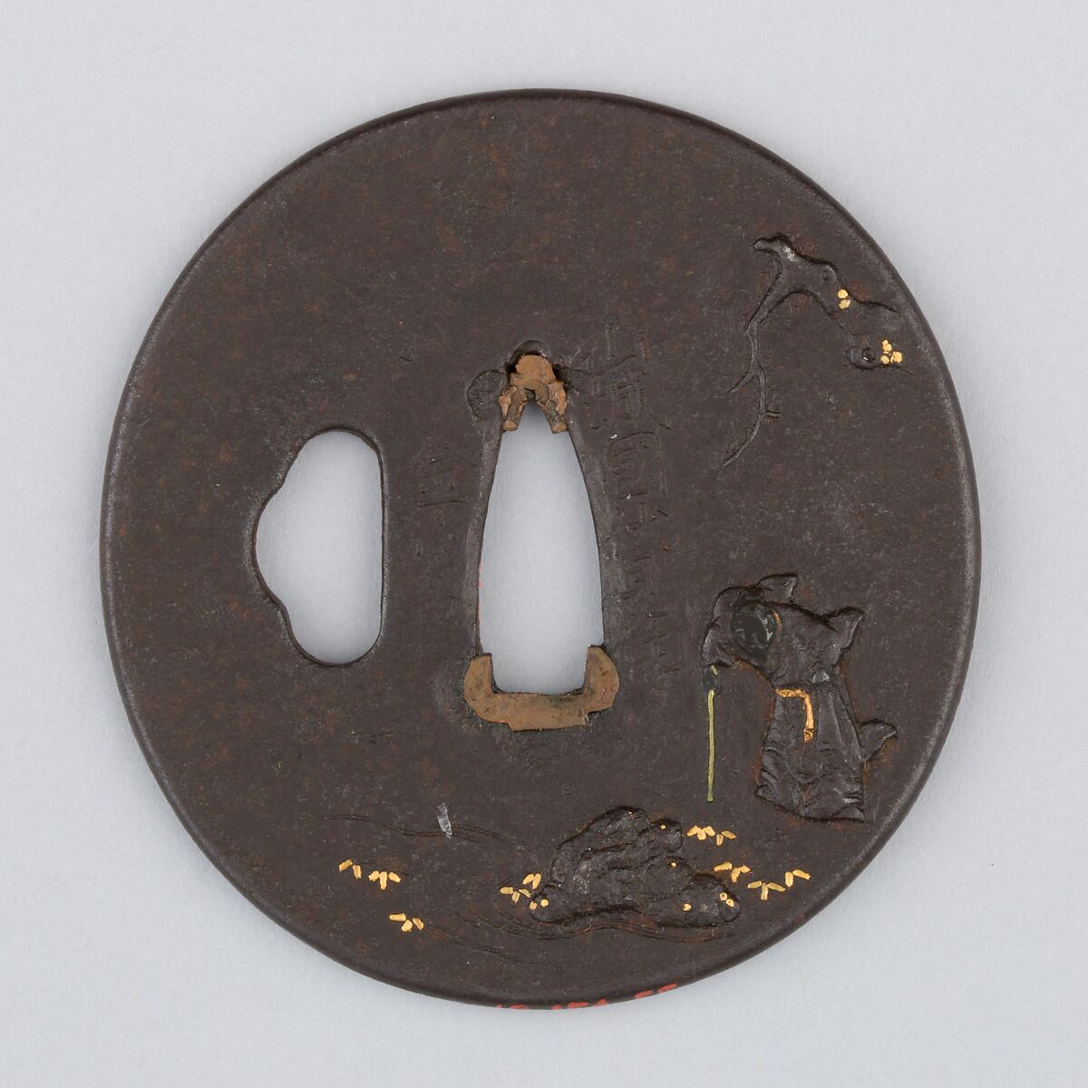 A tsuba is a sword guard and part of a sword mounting. It is mounted between the sword’s blade and grip to protect the user’s hands.