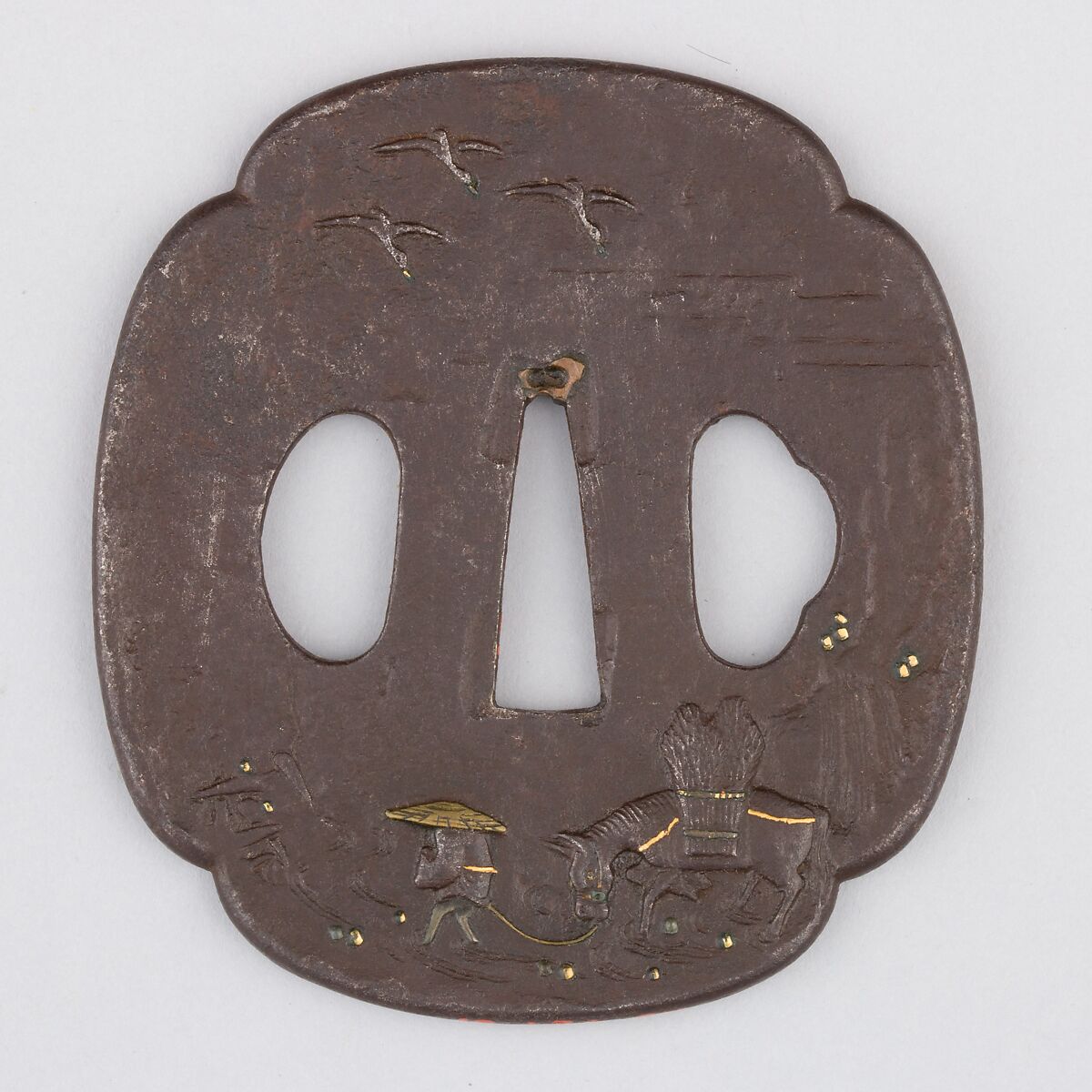 A tsuba is a sword guard and part of a sword mounting. It is mounted between the sword’s blade and grip to protect the user’s hands.
