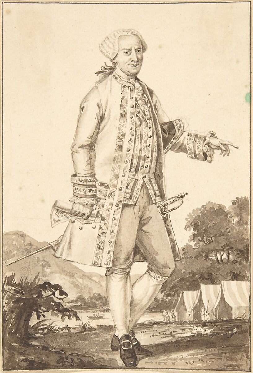 - Medium: Brush and brown wash over graphite
