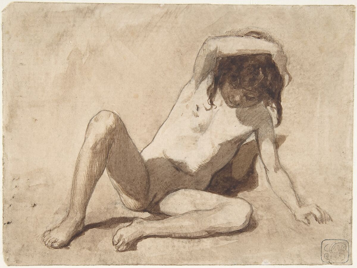 - Medium: Brush and brown wash over black chalk