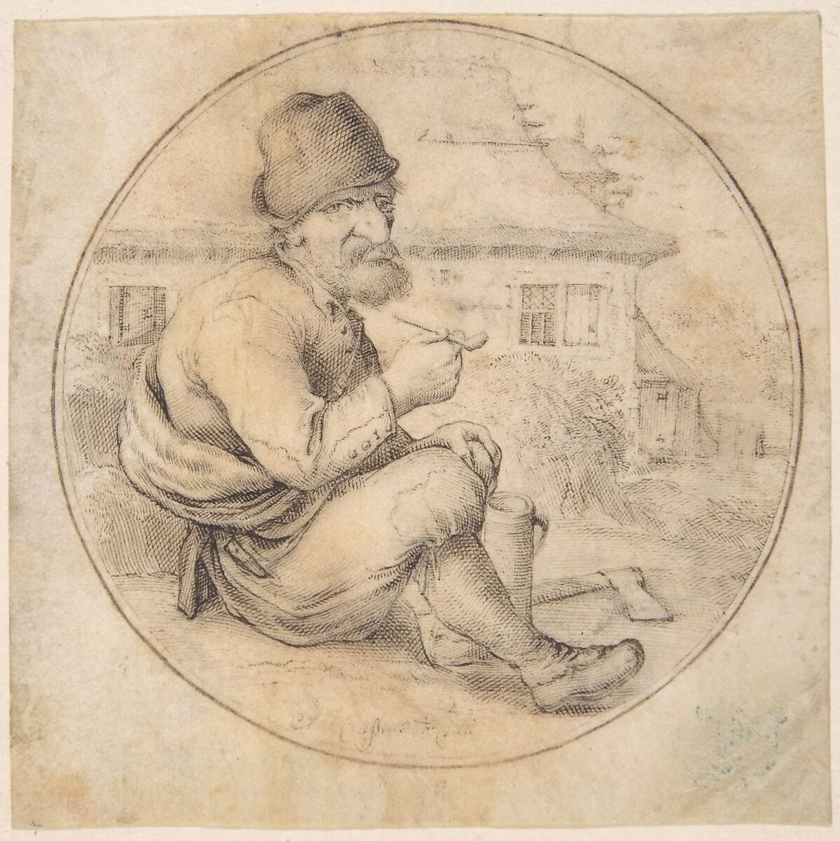 - Medium: Pen and brown ink, black chalk. Inscribed in a double roundel drawn in pen and brown ink.