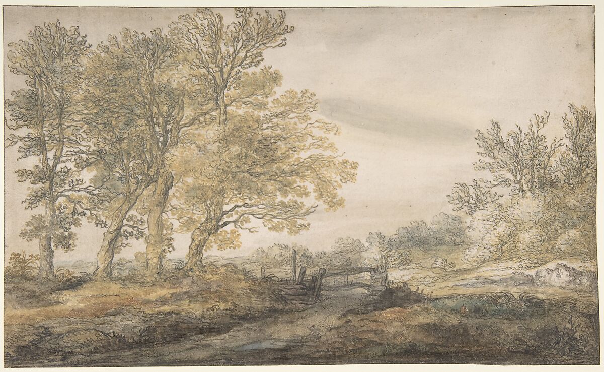 Cuyp's looped and choppy lines, plumped up with touches of color, bring us the beauty of the Dutch countryside in summer, when warm light flickers through twigs and foliage. Cuyp was probably in his early twenties when he made this fine sheet. It belongs to a group of drawings executed in and around Utrecht, his mother's hometown. The artist would have visited that city on a number of occasions, because it is also where his father, Jacob Gerritz, lived. Cuyp had been apprenticed to Abraham Bloemaert.