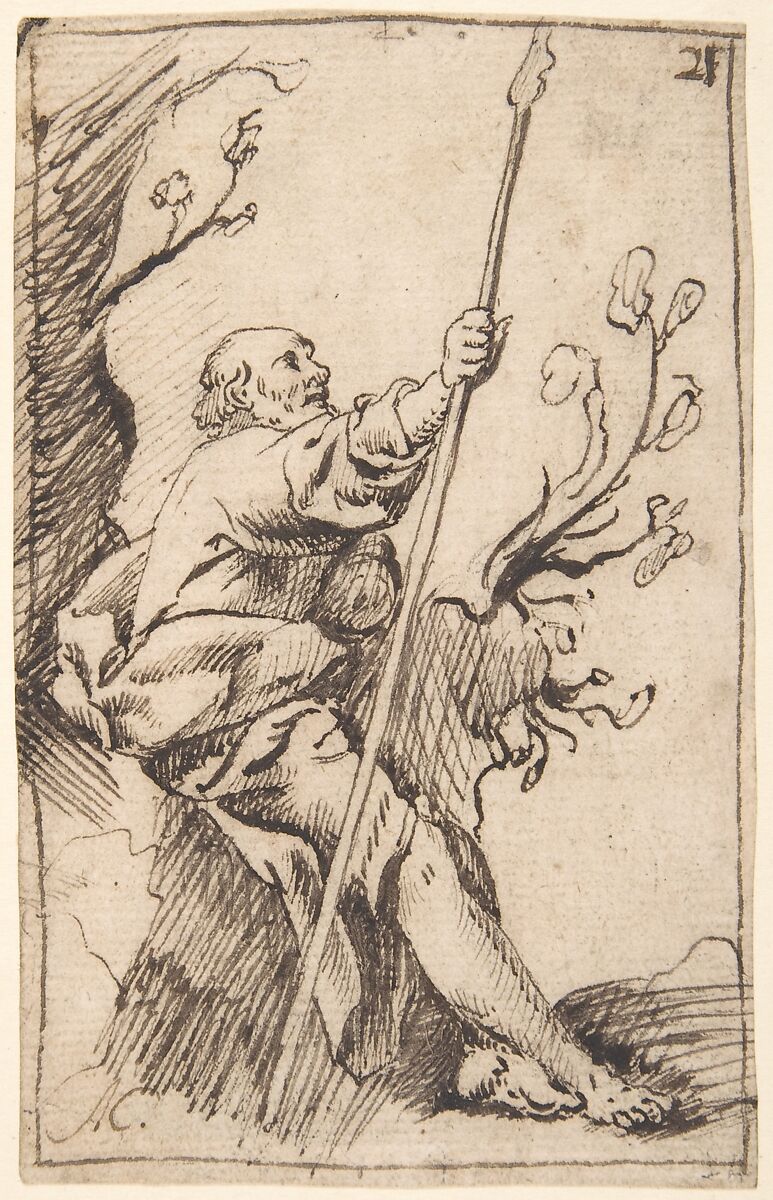 - Medium: Pen and light brown ink over traces of black chalk underdrawing. Composition outlined with pen and brown ink. On tan paper