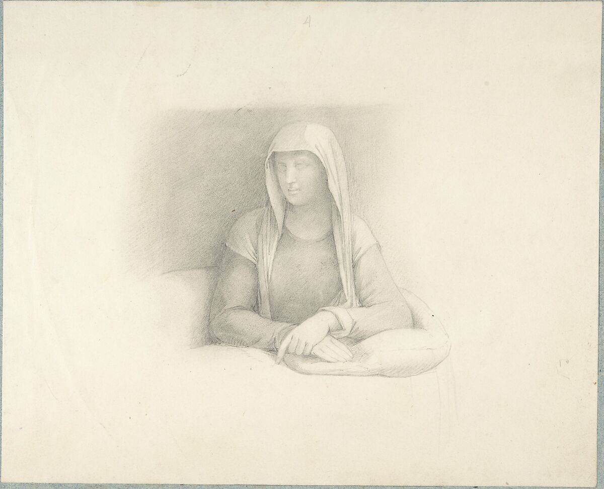- Medium:Graphite laid down on blue paper mount; framing lines in pen and brown ink