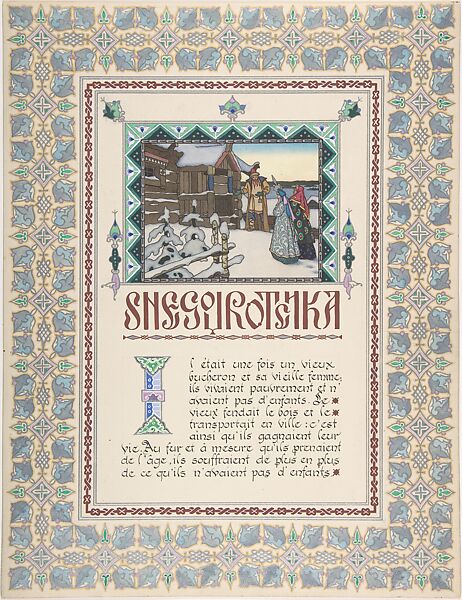 - Title:Story Title Page, "Snegurochka" [Snow Maiden]; verso, text