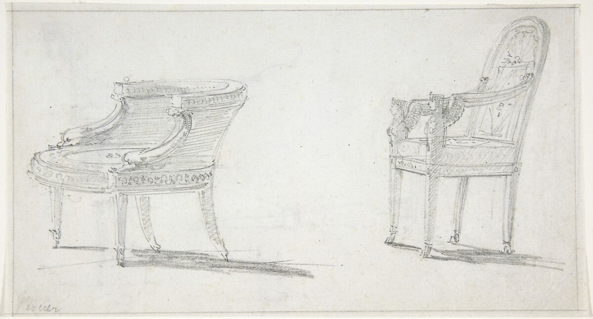 - Title:Studies for Two Armchairs (recto); sketches for Three Chairs and Parts of a Fourth (verso)