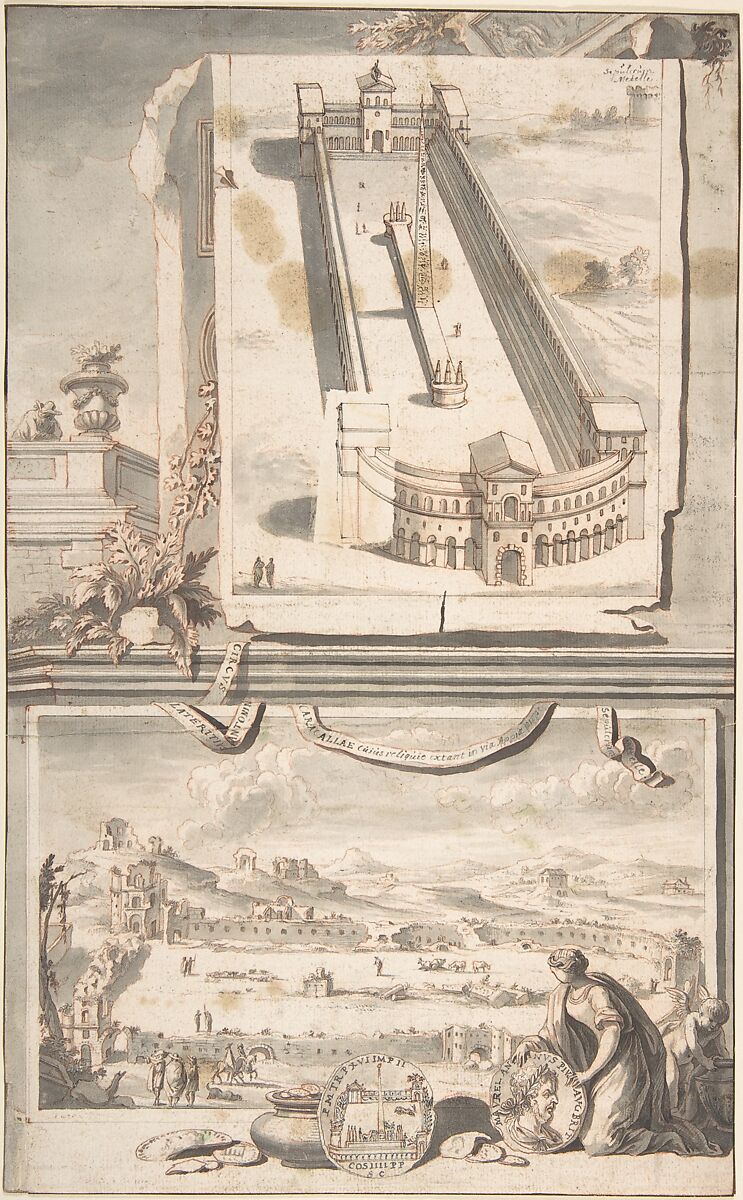 - Title: Reconstruction of the Circus of Caracalla (above) and a View of the Ruins (below)