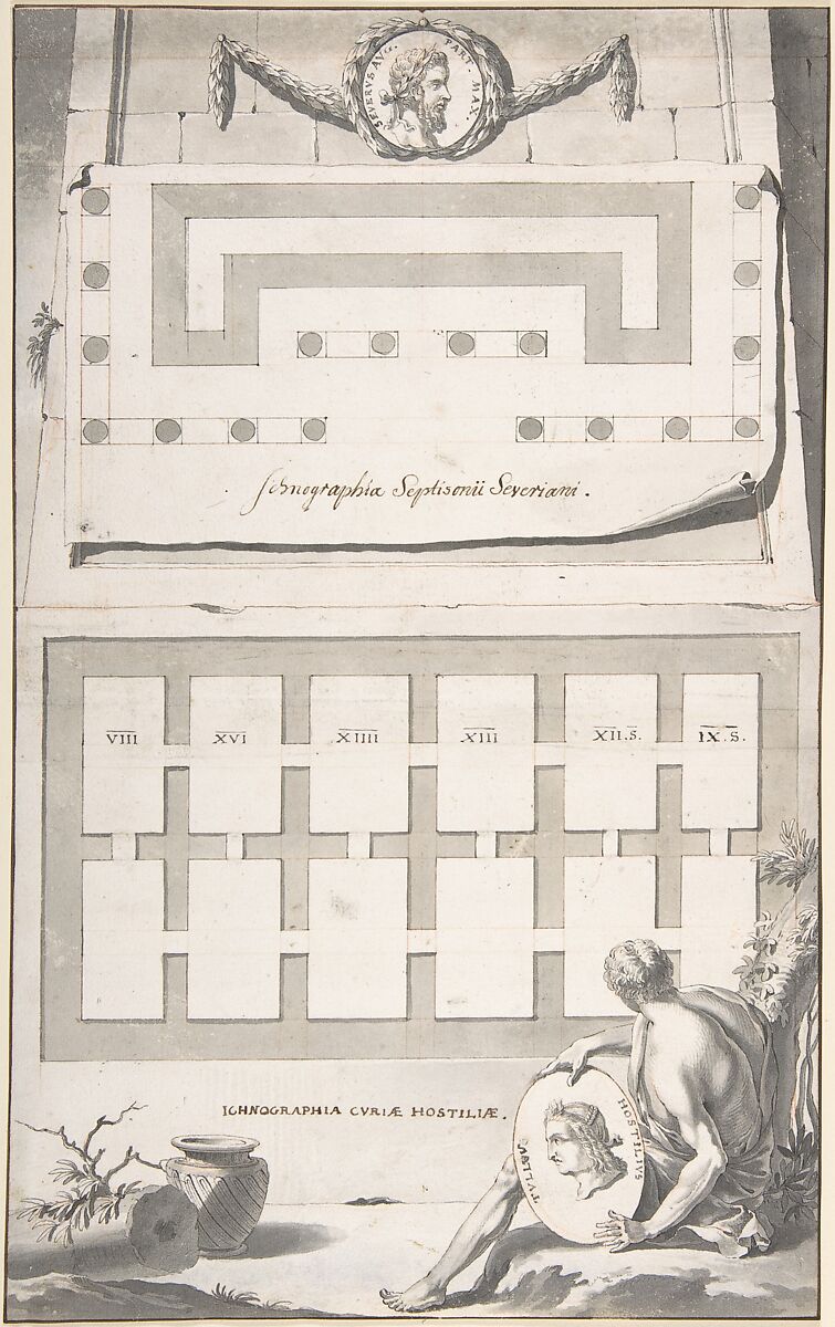 - Title:Ichnographia (or groundplan) of the Arch of Septimius Severus (above) and the Curia Hostilia (below)