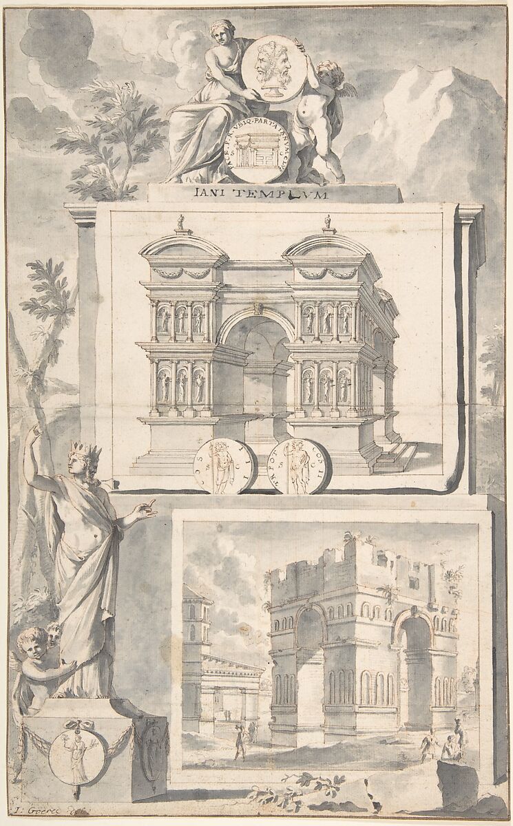 - Title: A Reconstruction of the Temple of Janus (above) and a View of the Ruins (below)