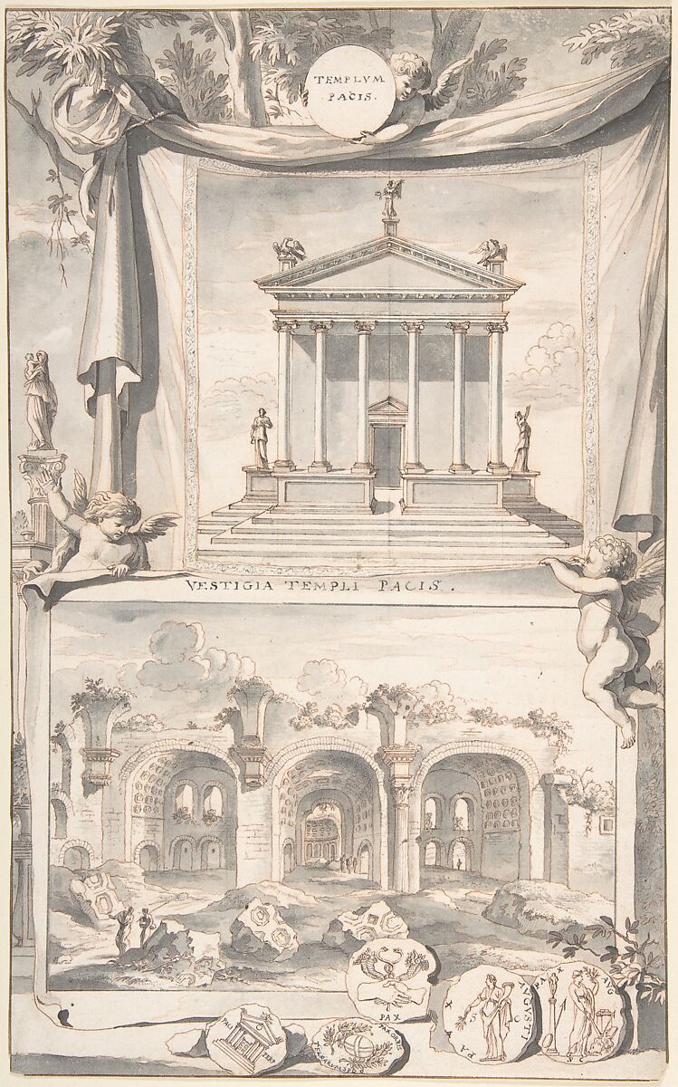 - Title: A Reconstruction of the Templum Pacis (above) and a View of the Ruins (below)