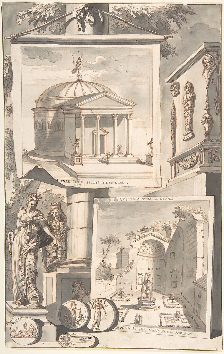 - Title: A Reconstruction of the Templum Isis (above) and a View of the Ruins (below)