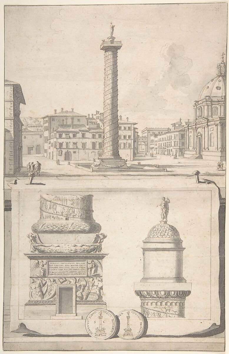 - Title:A View of the Column of Trajan (above) with Details (below)