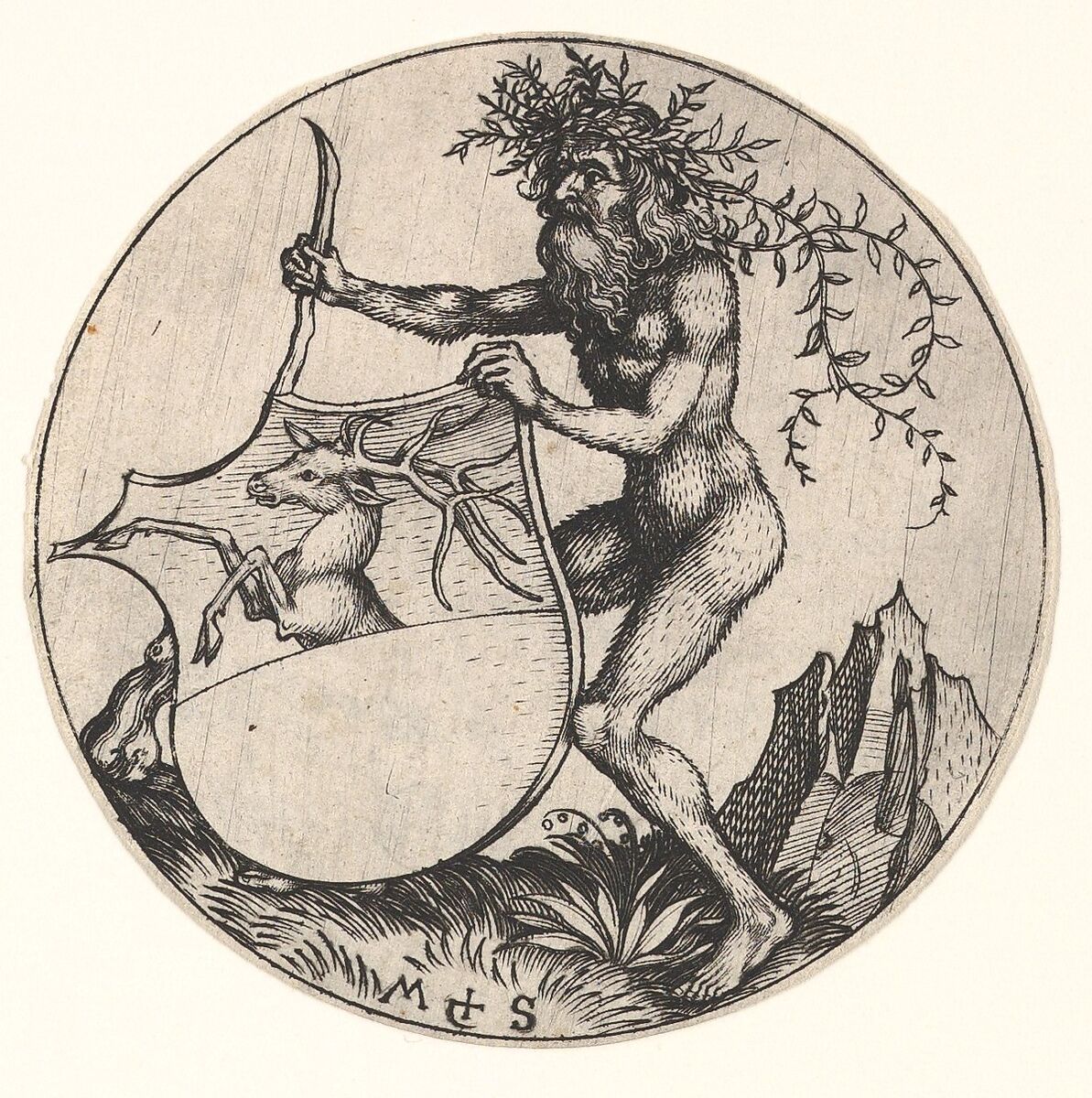 - Title: Shield with Stag Held by Wild Man