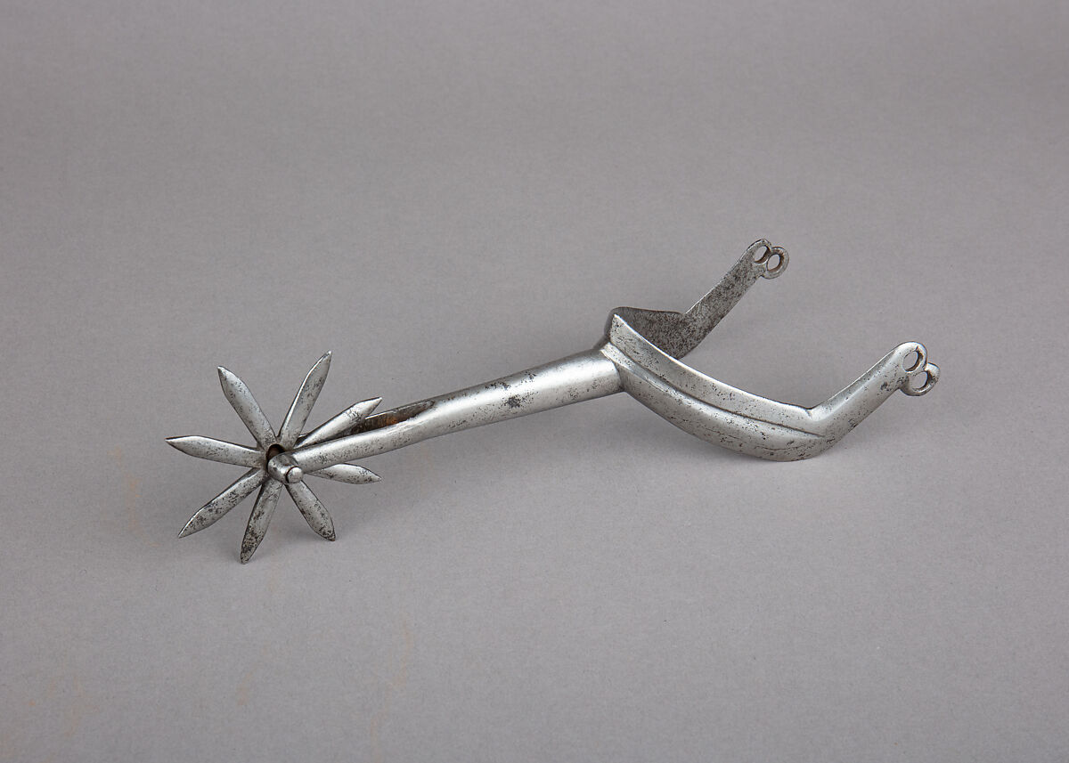 In the 15th century, rowel spurs with very long necks were of common use in western Europe. At this period, the elevated war saddles and the very specific riding style, with long stirrup leathers and legs extended forward, had the consequence of taking away the rider’s feet from the horse’s flank. Thus, these long necks gave them easier access without having to disturb the rider’s position.