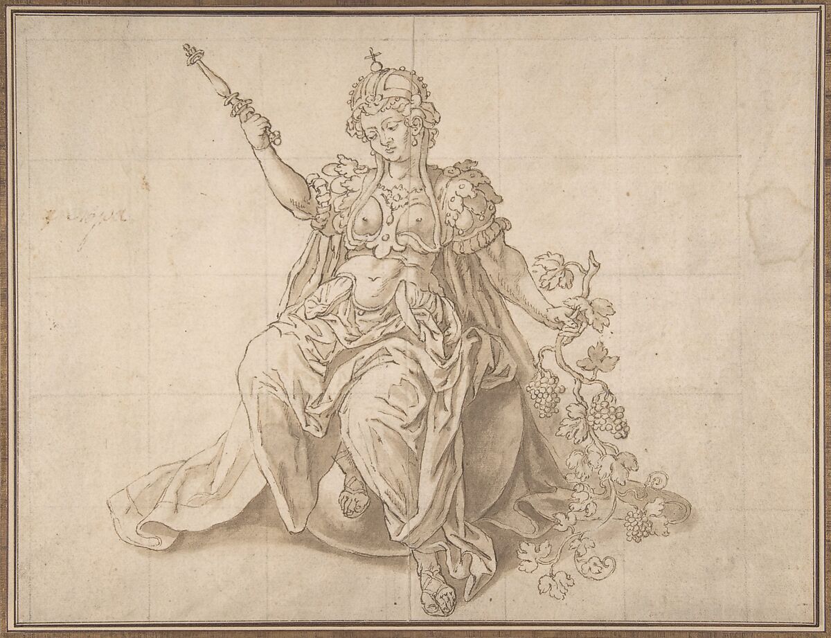 - Medium:Pen and brown ink, brush and brown wash, squared in black chalk